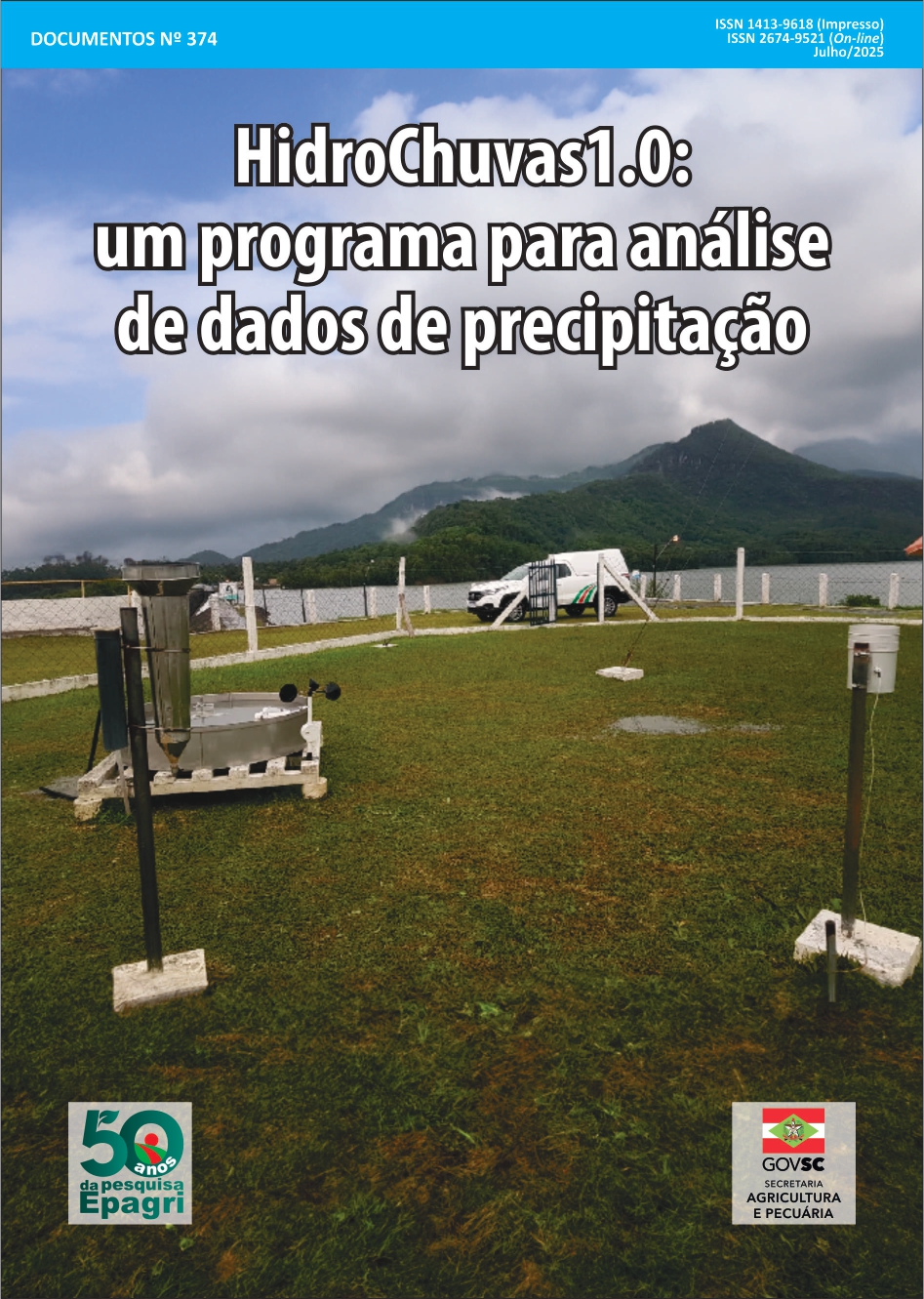 A ocorrência de chuva, ou sua ausência por longos períodos, interfere em uma série de atividades, e nesse sentido, são investidos grandes recursos no monitoramento desse fenômeno. Inúmeras informações podem ser obtidas a partir de dados coletados, que variam de acordo com a natureza da atividade. A Epagri procura atender as principais demandas das informações de chuva e outras variáveis meteorológicas do estado de Santa Catarina, além de realizar as previsões climáticas. O programa HidroChuvas é uma ferramenta que permite aos profissionais das diferentes áreas de formação realizar de forma rápida análises e obtenção dos resultados para seu local de interesse. O programa tem embasamento no livro “Metodologias para análise de séries históricas e modelagem da precipitação”, disponibilizado à sociedade, juntamente com as demais publicações da Epagri.