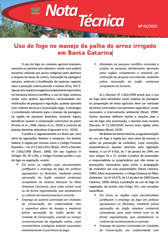• Uso do fogo no manejo da palha do arroz irrigado em Santa Catarina